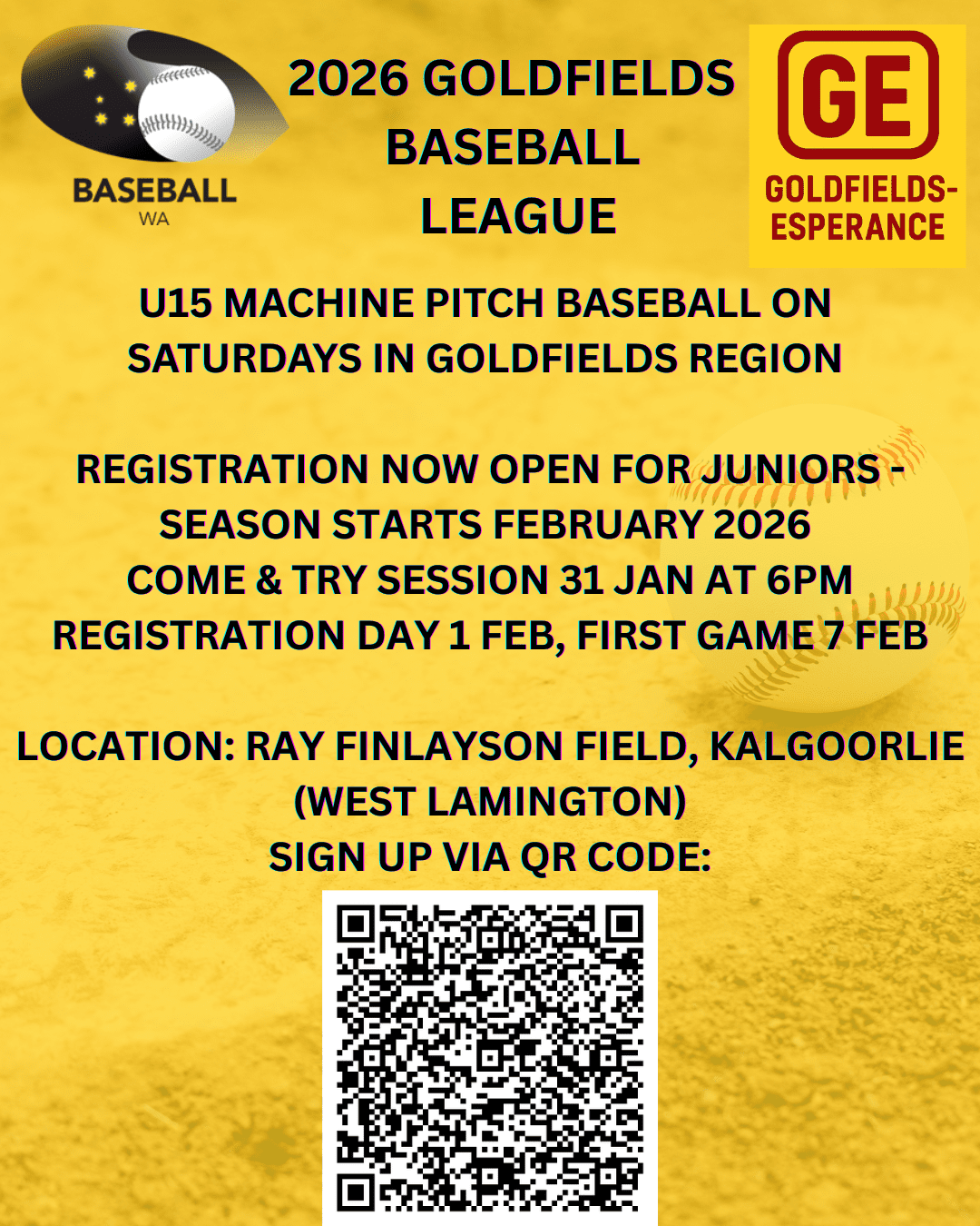 Registration Now Open for 2026 Goldfields Baseball League Starting in February