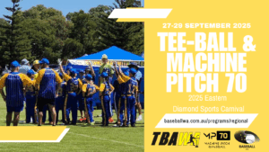 Baseball WA is excited to announce plans for Tee-Ball and Machine Pitch 70 at the 2025 Eastern Diamond Sports Carnival, which will be held at the Oasis Playing Fields (Kalgoorlie-Boulder) from 27-29 September.