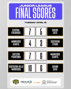 Nathan Hanks led the Phantoms with two knocks, while Noah Romeo ran wild on the bases with three steals. Their defence was sharp too, playing error-free baseball.