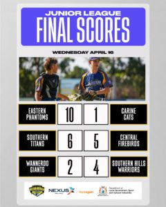 The Eastern Phantoms were in fine form on Wednesday, powering past the Carine Cats with a commanding 10-1 win at Empire Ballpark. The Phantoms got rolling early, with Dion Nicholas and Nathan Hanks each driving in a run in the first, followed by Hunter Gordon’s RBI single in the second.